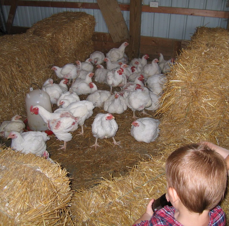 No surprisingly, Marie was really not interested in helping with the butchering. She did hang out for a little while and actually did pet a chicken, though not one whose minutes were numbered. Joey liked watching the pigs more than the chickens, but they both ended up playing inside with other kids most of the time.